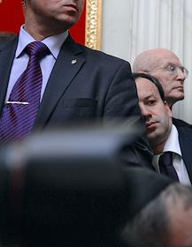 Заместитель председателя правительства России Аркадий Дворкович (в центре) во время выступления…