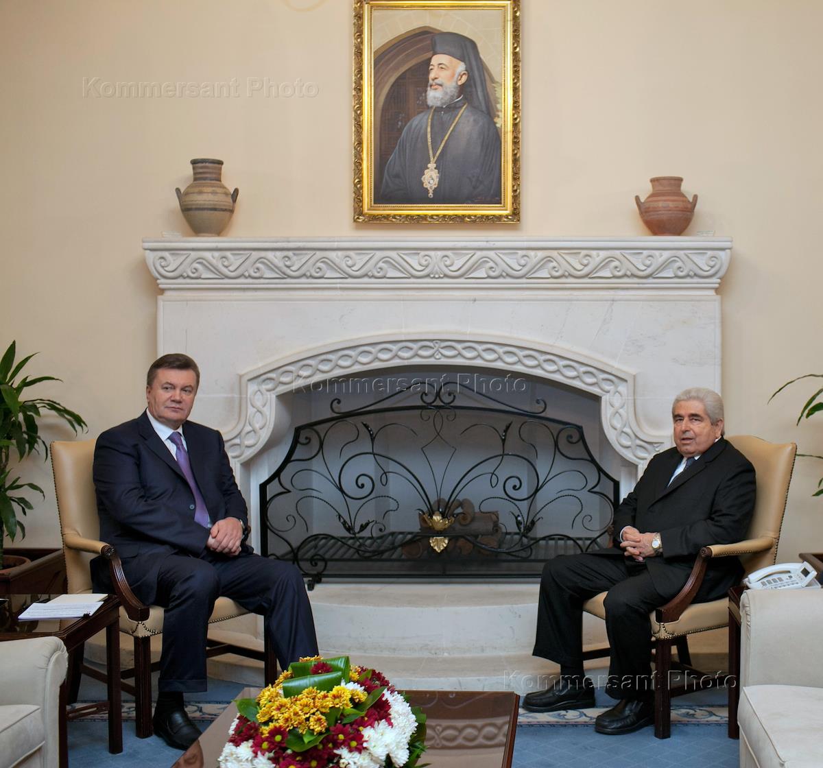 Президент Республики Кипр Димитрис Христофиас (слева) и президент Украины Виктор Янукович (справа)…