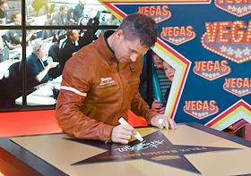 Австрийский парашютист, бейсджампер Феликс Баумгартнер во время церемонии заложения именной звезды в…