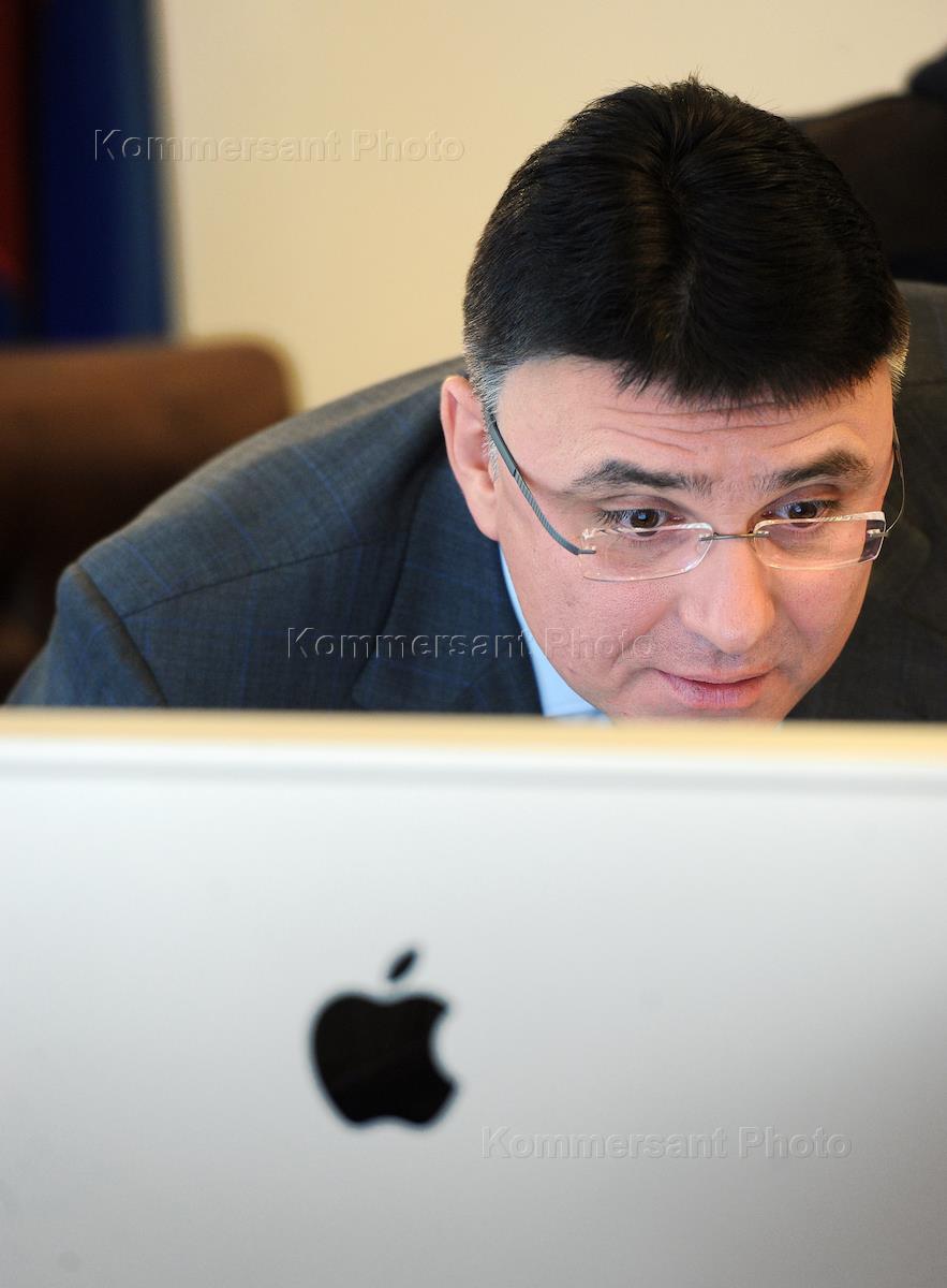 Руководитель Роскомнадзора Александр Жаров во время интервью в офисе компании.
