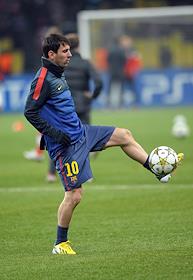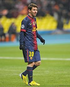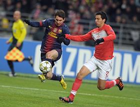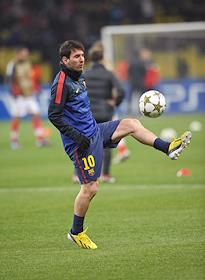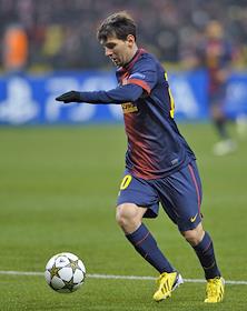 Лига чемпионов УЕФА 2012/13. Нападающий ФК "Барселона" Лионель Месси во время матча между командами…