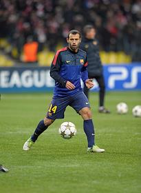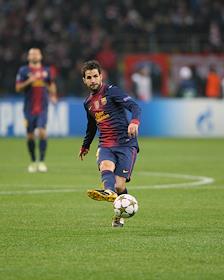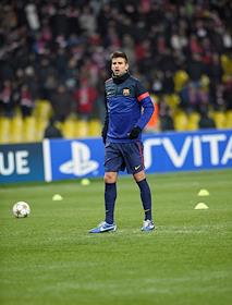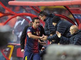 Лига чемпионов УЕФА 2012/13. Полузащитник ФК "Барселона" Хави Эрнандес (слева) во время матча между…