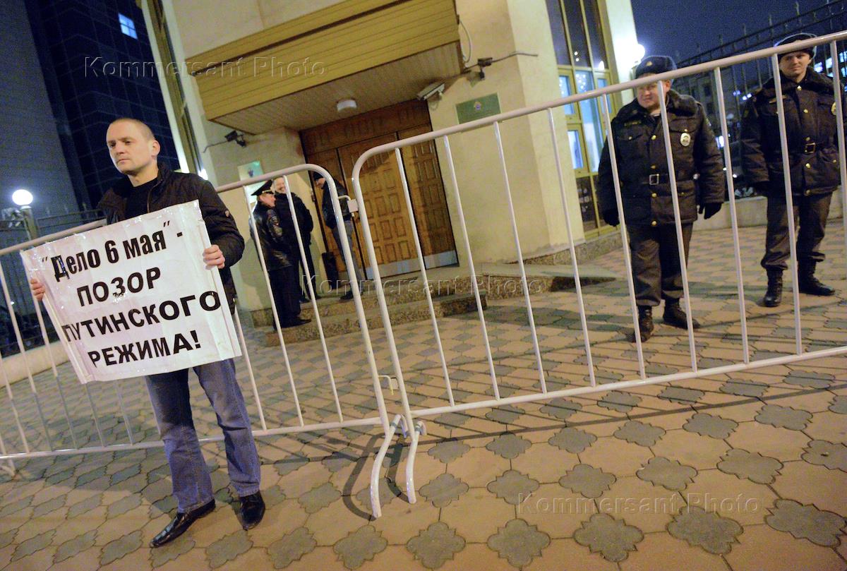 Лидер движения "Левый фронт" Сергей Удальцов во время акции "Оккупай СК" в формате пикета. Акция…