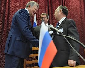 Делегат Александр Смирнов (cлева) и избранный председатель Казачьей партии, вице-губернатор…