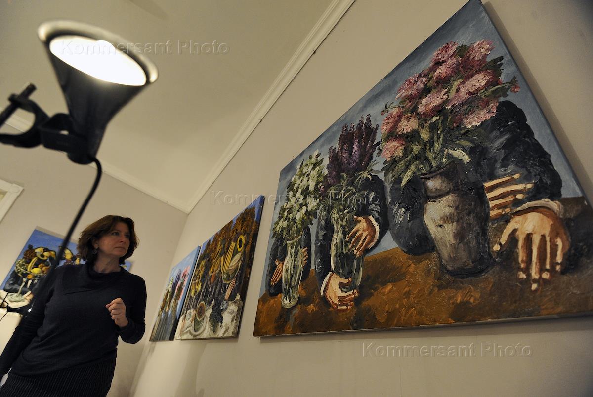 Посетитель на церемонии открытиии выставки художника Натальи Нестеровой "Шутка" в галерее "Роза…