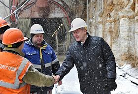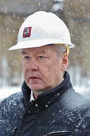 Мэр Москвы Сергей Собянин во время осмотра строящейся станции метрополитена "Лесопарковая".
