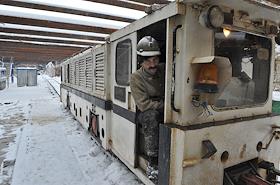 Строящийся участок Бутовской линии метро и станции "Лесопарковая". Рабочий чистит снег.