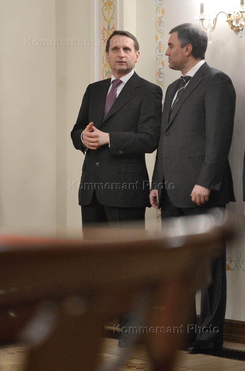 Председатель Государственной думы (ГД) России Сергей Нарышкин (слева) и первый заместитель…