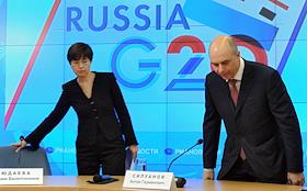Экономика и бизнес П/к, посвященная председательству России в "Группе двадцати", которое начинается 1 декабря 2012 года. В пресс-конференции приняли участие министр финансов РФ Антон Силуанов; российский шерпа в "Группе двадцати", начальник Экспертного управления президента РФ Ксения Юдаева.
