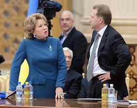 Председатель Совета Федерации России Валентина Матвиенко (слева) и первый заместитель председателя…