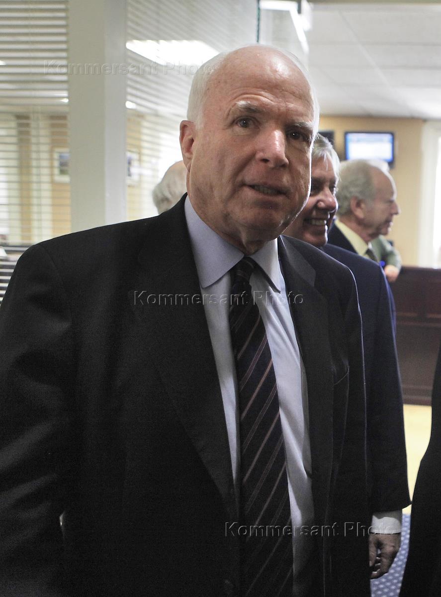 Сенатор от штата Аризоны Джон Маккейн (в центре) во время процедурры голосования в сенате США по…