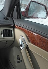 Тест-драйв автомобиля Cadillac CTS (Кадиллак). Интерьер салона автомобиля. Пассажирская дверь.