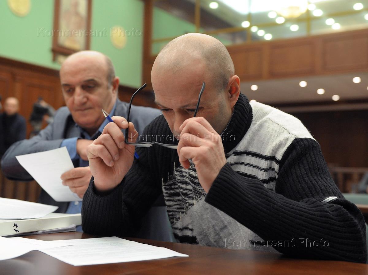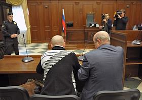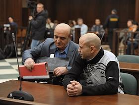 Адвокат Карен Нерсесян (слева) и подсудимый, бывший сотрудник ГУВД Москвы Дмитрий Павлюченков…