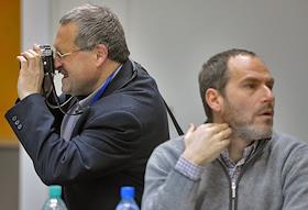 Оператор Павел Костомаров (слева) и телеведущий Михаил Шац (справа) на заседании Координационного…