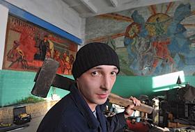 Саткинский щебеночный завод. Рабочий в ремонтной мастерской.