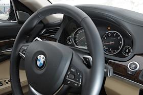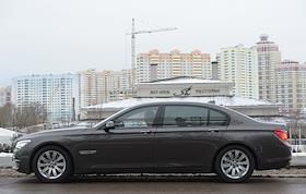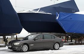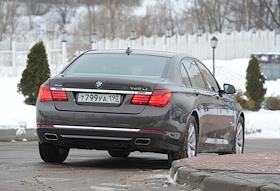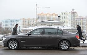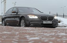 Обозреватель журнала "Деньги" Илья Зиновьев во время тест-драйва автомобиля BMW 740 (БМВ 740).