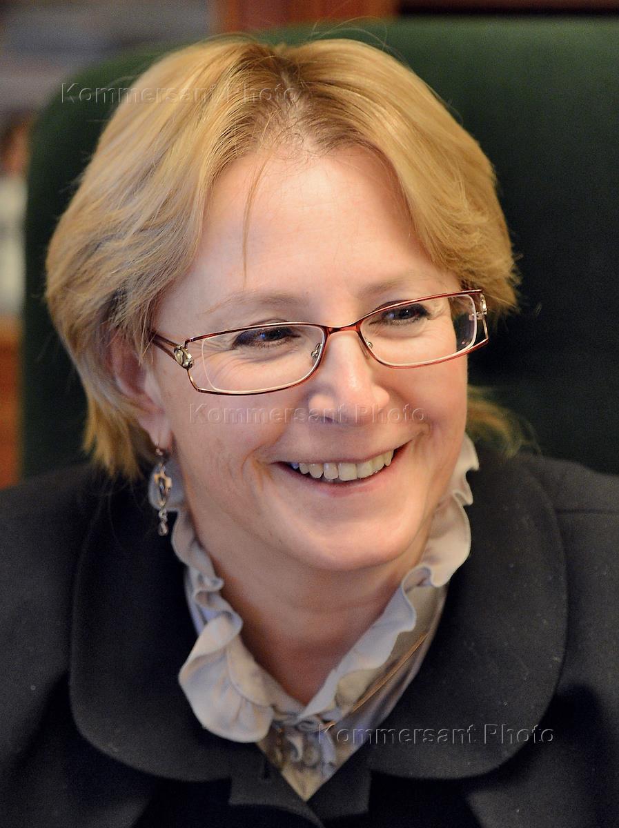 Министр здравоохранения России Вероника Скворцова во время интервью.