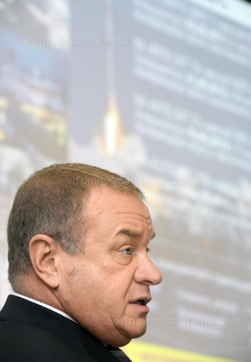 Президент, генеральный конструктор РКК "Энергия" Виталий Лопота во время пресс-конференции,…