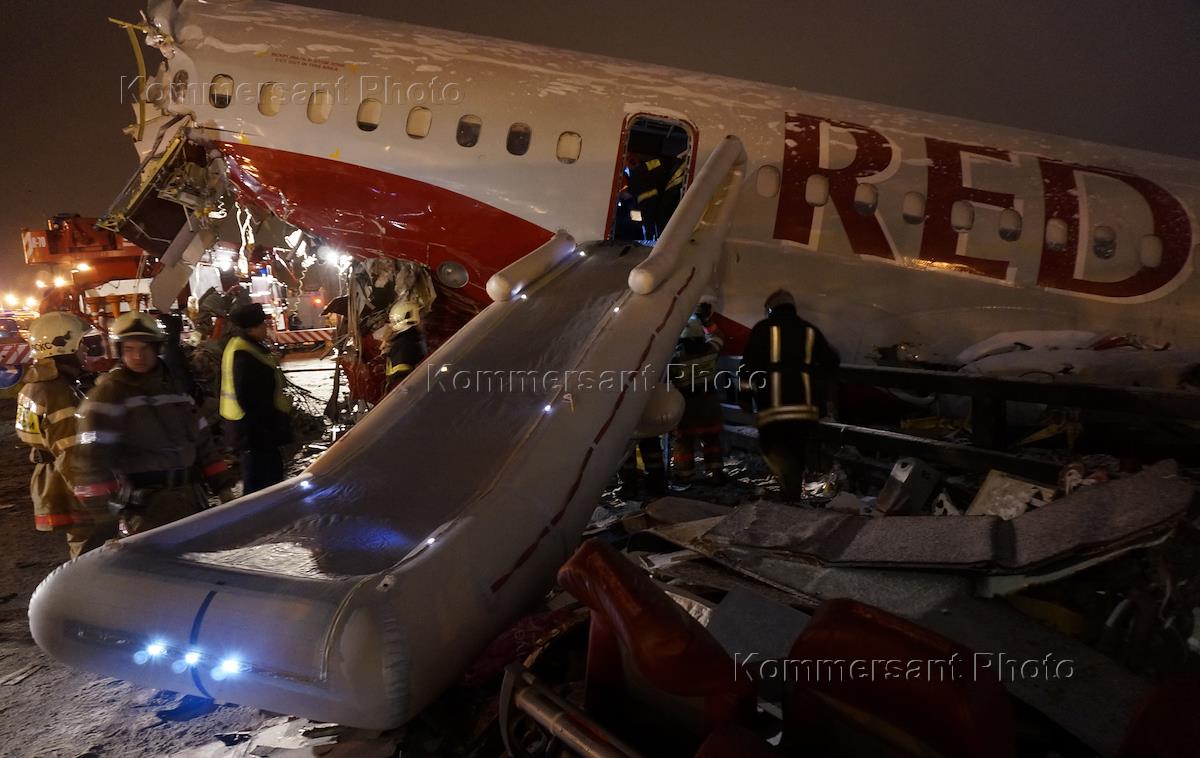 Происшествия и конфликты Спасатели МЧС РФ работают на месте происшествия в аэропорту "Внуково", где самолет Ту-204 авиакомпании Red Wings выехал за пределы взлетно-посадочной полосы на проезжую часть Киевского шоссе, загорелся и развалился на части.