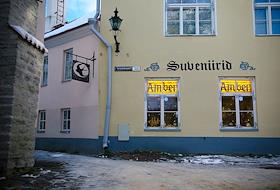 Виды Таллина. Фигурка поросенка с крыльями в сувенирной лавке.