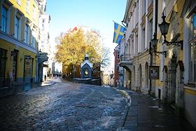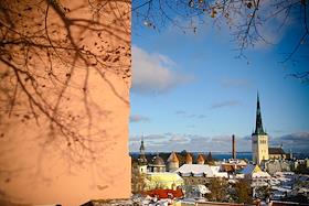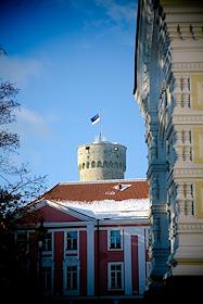 Виды Таллина. Государственный флаг Эстонии на башне замка.