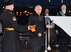 Политика Президент РФ Владимир Путин в Североморске. Торжественная церемония вручения Ордена Нахимова тяжелому атомному ракетному крейсеру "Петр Великий".