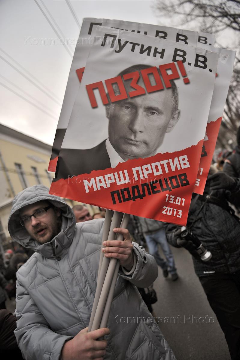 Политика Гражданское шествие "Марш против подлецов". Шествие против "закона Димы Яковлева", запретившего американцам усыновлять российских сирот, и за роспуск Госдумы, которая поддержала закон почти единогласно, прошло от Пушкинской площади до проспекта Сахарова.