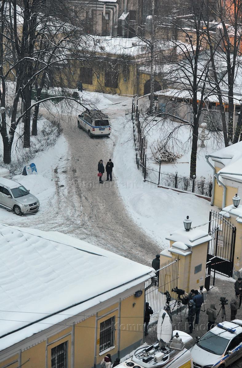 Сотрудники полиции во время осмотра места покушения на вора в законе Аслана Усояна (Дед Хасан).