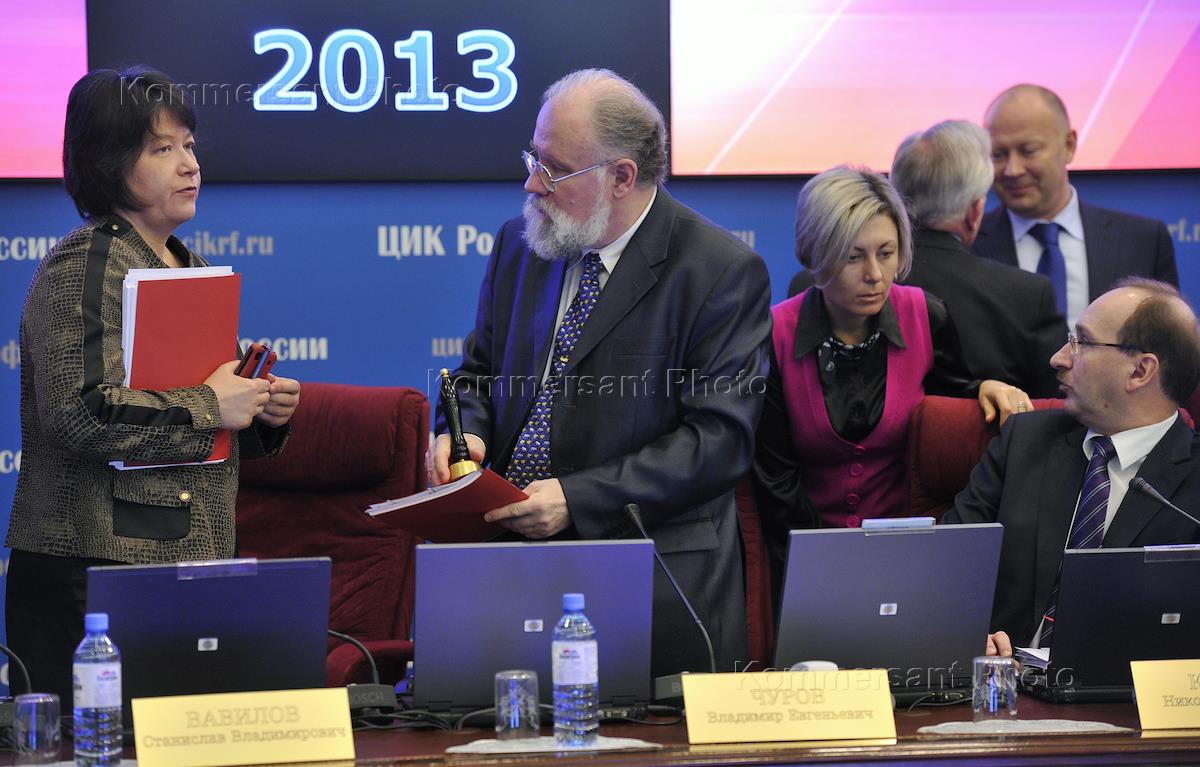 Председатель Центризбирком России Владимир Чуров (в центре) и его заместитель Станислав Вавилов…