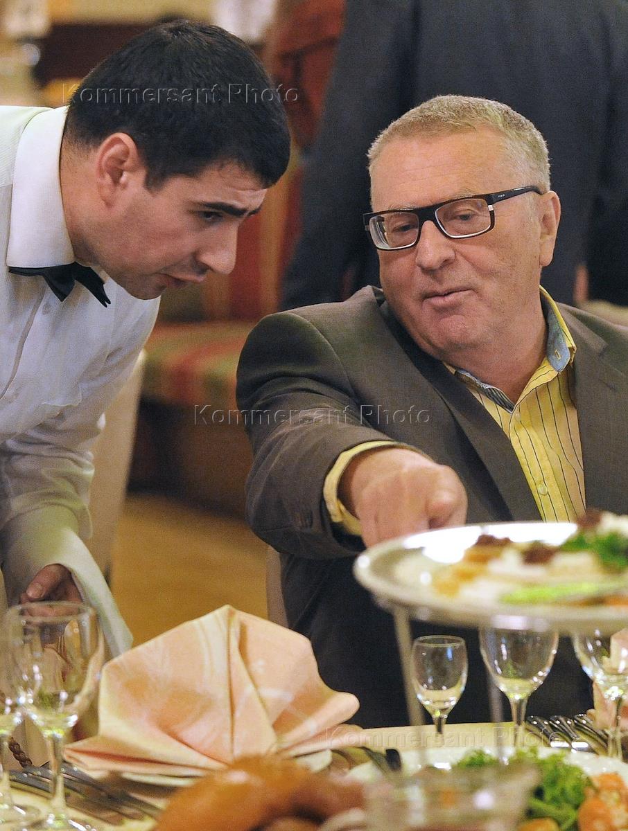 Лидер Либерально-демократической партии России (ЛДПР) Владимир Жириновский (второй слева) на вечере…
