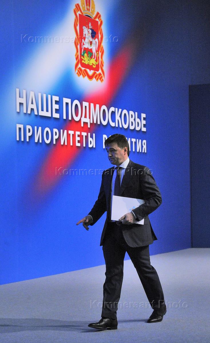 Исполняющий обязанности губернатора Московской области Андрей Воробьев перед выступлением с…