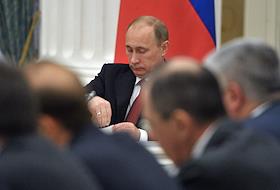 Президент России Владимир Путин во время расширенного заседания правительства России в Кремле.