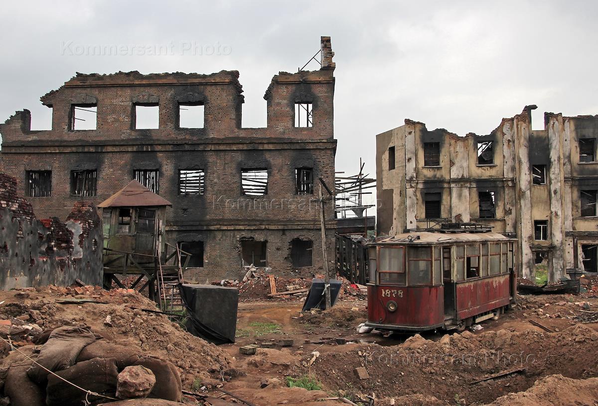 Декорации воспроизводящие центральную часть Сталинграда на территории воинской части, для съемок…