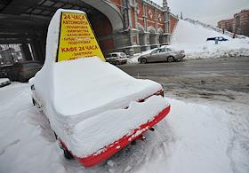 Последствия сильного снегопада в Москве. Автомобиль, засыпанный снегом.