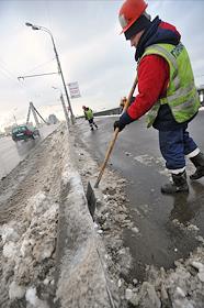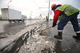 Последствия сильного снегопада в Москве. Уборка снега на улицах города..
