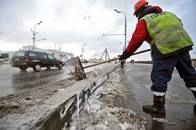 Последствия сильного снегопада в Москве. Уборка снега на улицах города.