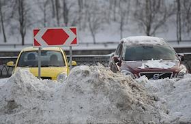 Последствия снегопада в Москве. Уборка снега на улицах города. Дорожное движение.