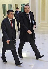 Заместитель председателя правительства России Дмитрий Рогозин (слева) и представитель в Совете…