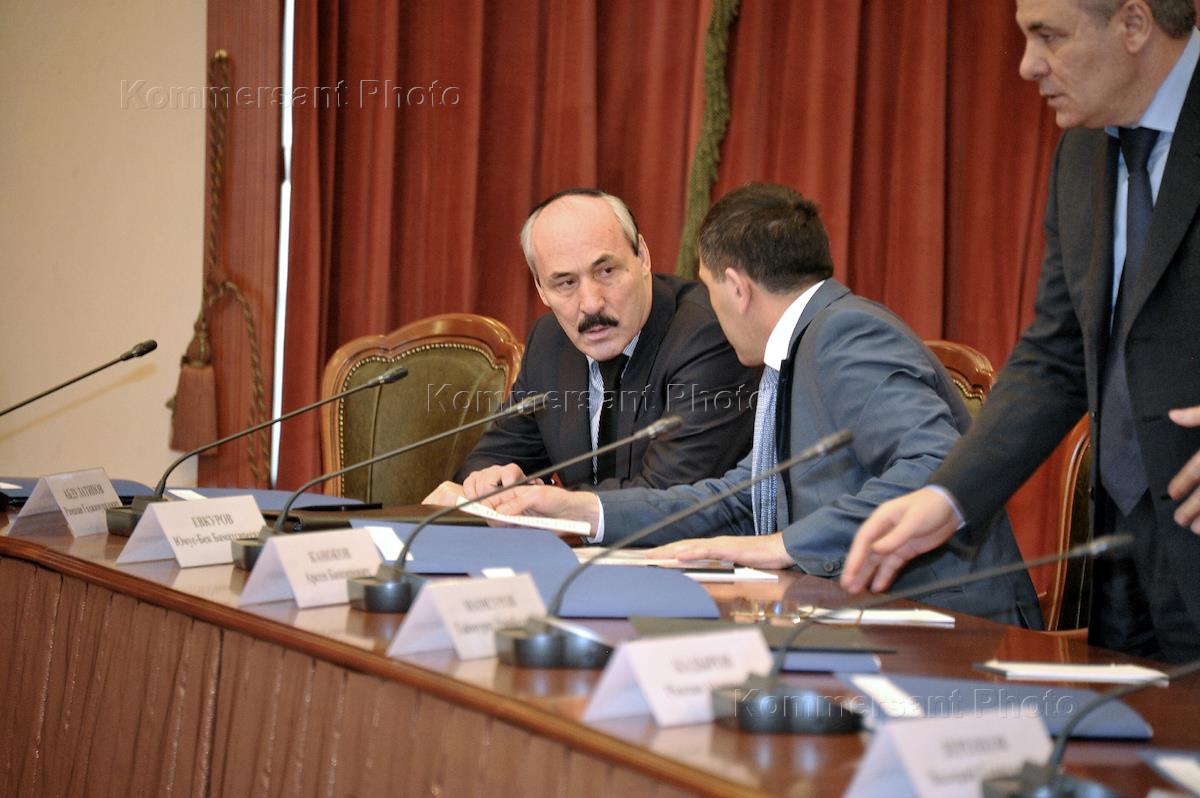 Слева направо: временно исполняющий обязанности президента Дагестана Рамазан Абдулатипов, президент…