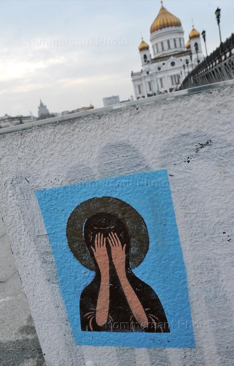 Жанровая фотография. Изображение иконы на бетонной стене .