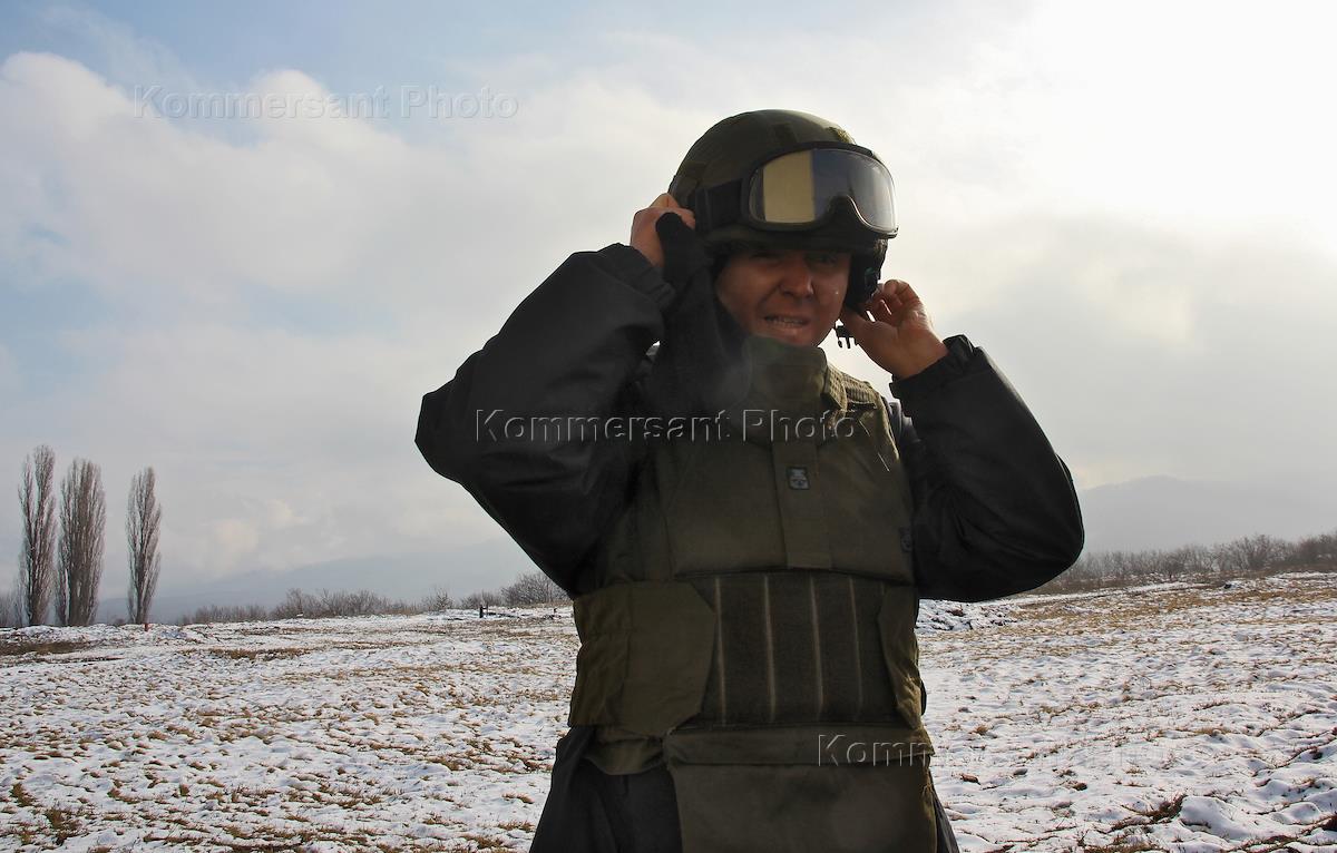 Заместитель главного редактора газеты "Коммерсантъ" Андрей Коняхин на полигоне 58 армии.