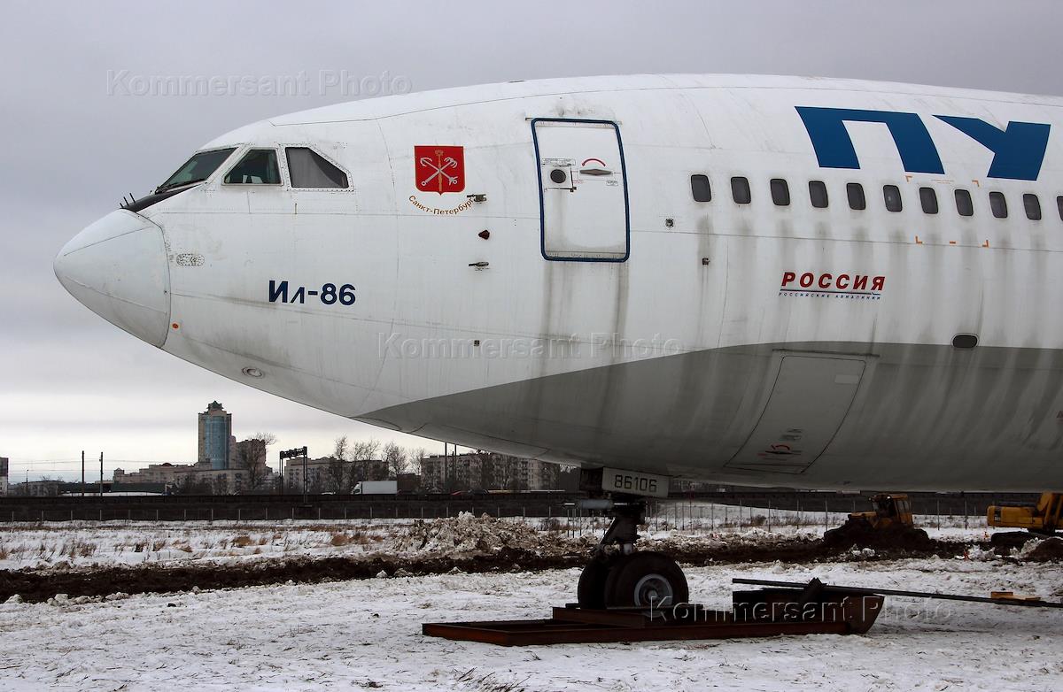 Списанный аэробус "Ил-86" был отбуксирован из аэропорта "Пулково" в вертолетный центр Helidrive для…