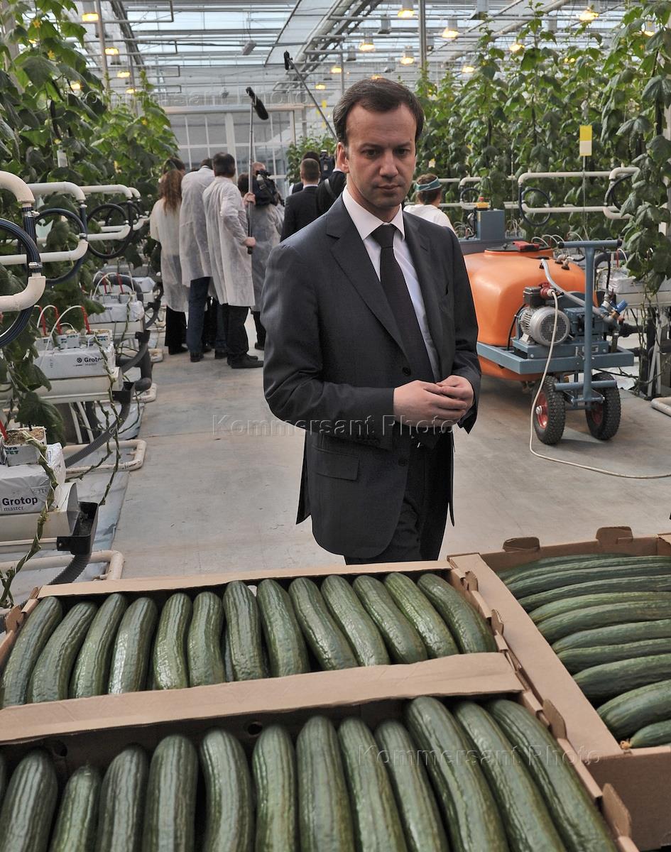 Рабочая поездка председателя правительства России Дмитрий Медведев во время осмотра огуречного…