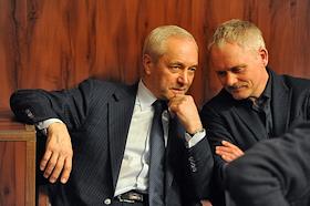 Сценарист, режиссер Александр Миндадзе (слева) и режиссер Юлий Гусман (справа) и во время заседания…