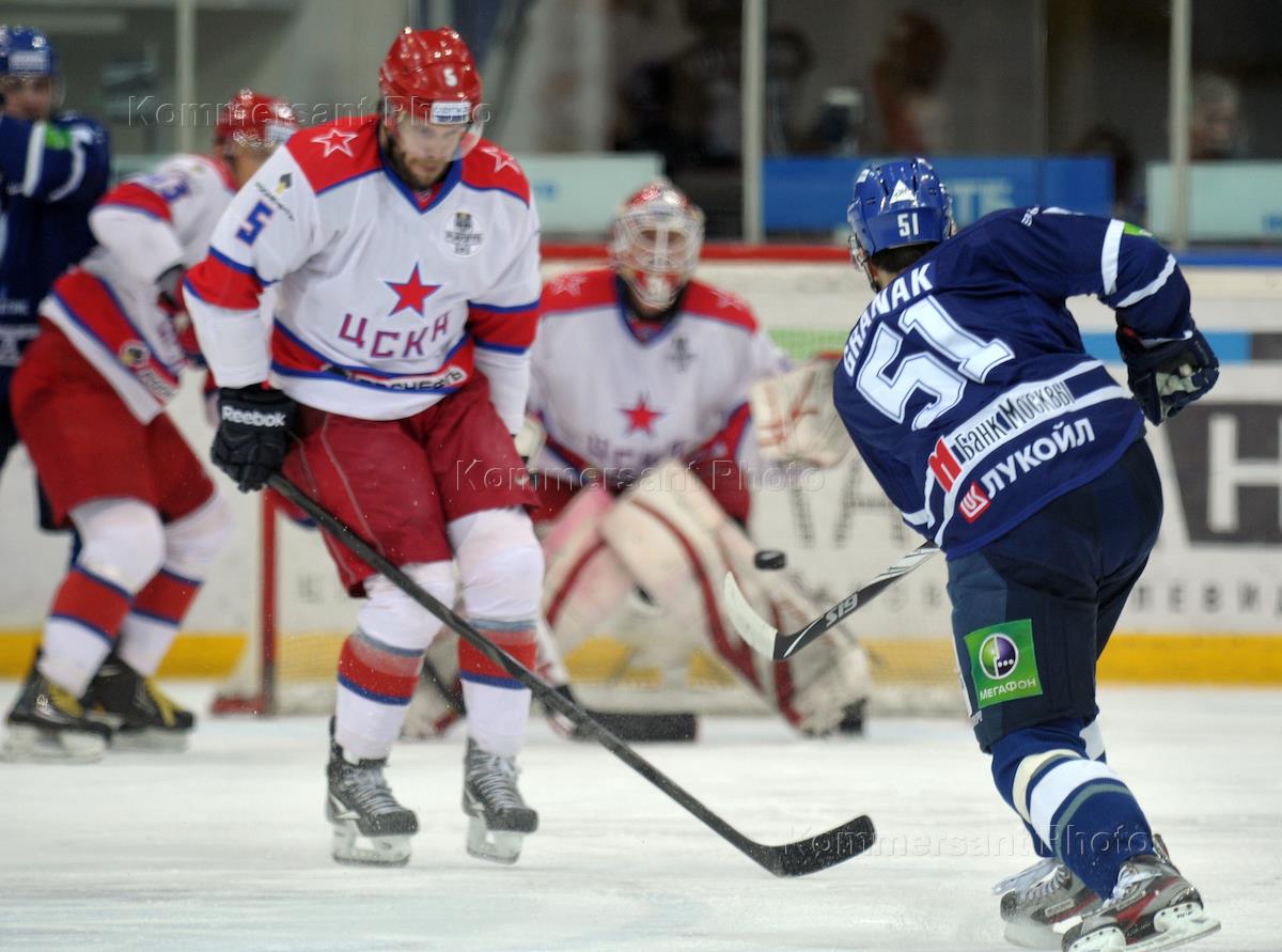 Континентальная хоккейная лига (КХЛ). Матч между командами "Динамо" (Москва) и ЦСКА (Москва) прошел…