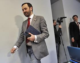 Бывший депутат Государственной думы России Геннадий Гудков во время пресс-конференции на тему:…