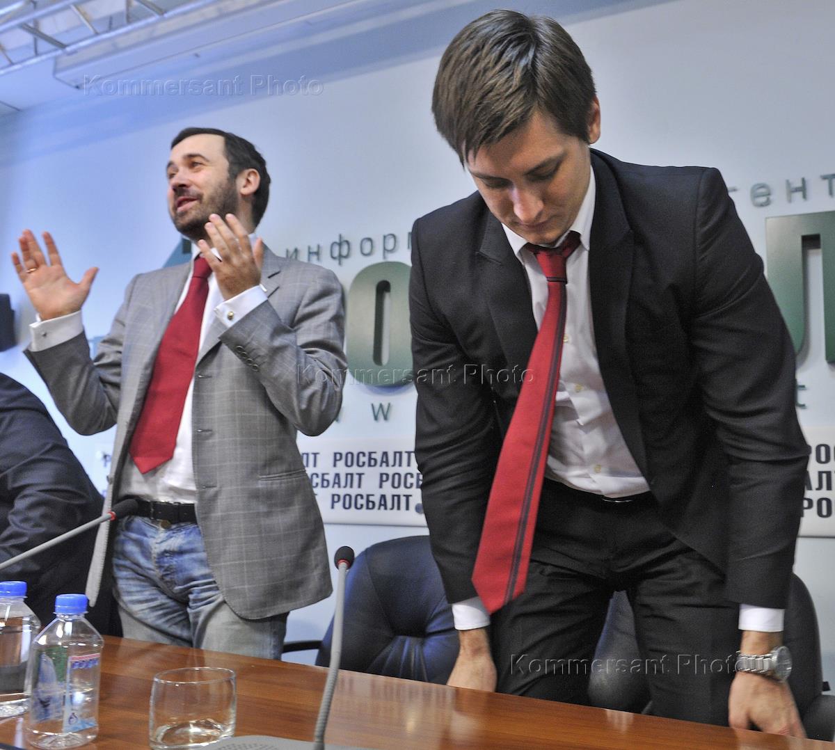 Политика П/к депутатов Государственной Думы Ильи Пономарева, Дмитрия и Геннадия Гудковых на тему "Ситуация в партии Справедливая Россия", в офисе информационного агентства "Росбалт".