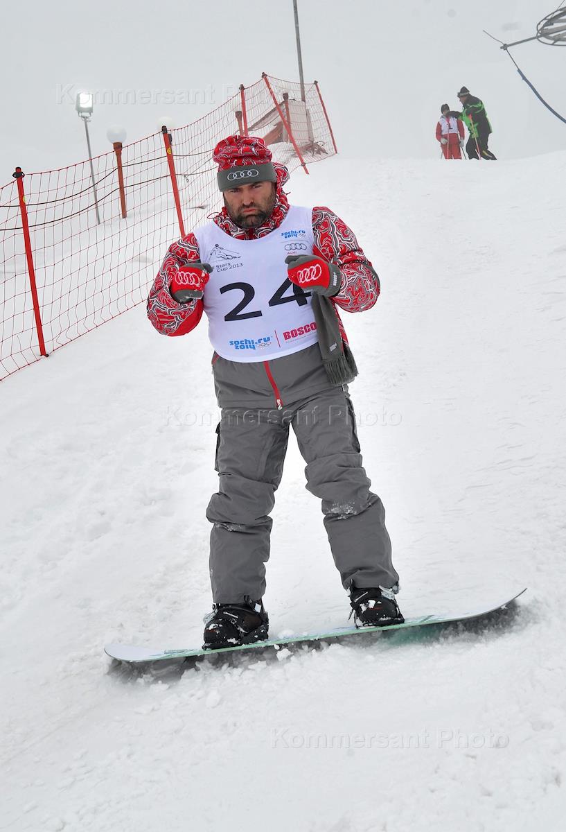 Шоумен Григорий Погосян во время Ежегодного турнира по горнолыжному и сноуборд-слалому с участием…