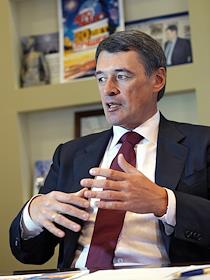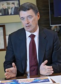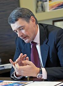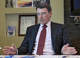 Президент Вещательной корпорации "ПрофМедиа" Юрий Костин во время интервью.