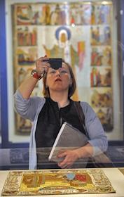 Пресс-брифинг, посвященный открытию выставки "Великий Князь и Государь Всея Руси Иван III" в одностолпной палате Патриаршего дворца Музеев Московского Кремля.